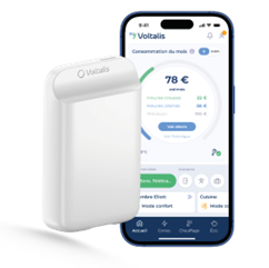Le thermostat connecté Voltalis permet de piloter son chauffage à distance et de programmer la température souhaitée pièce par pièce via une interface numérique (sur ordinateur ou via une application mobile). Les économies d’énergie réalisées sont également indiquées, y compris l’équivalent en euros.